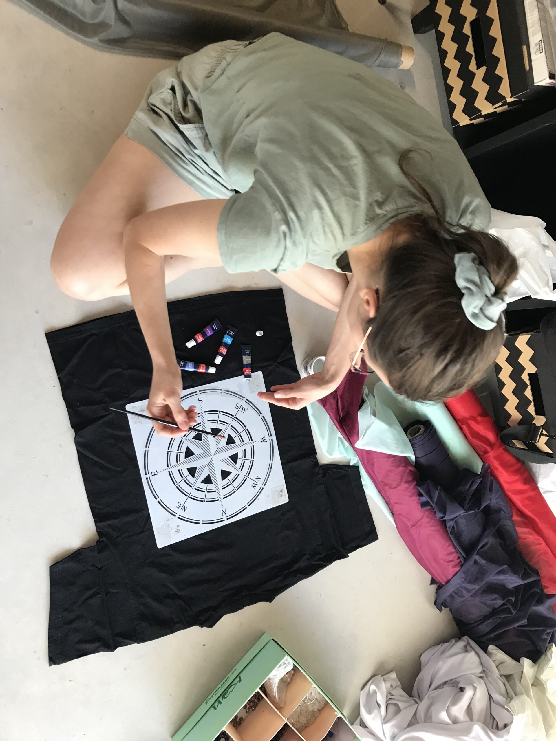 Warsztat 1. Projektowanie spersonalizowanych ubrań z używanych rzeczy i materiałów. Podstawy szycia na maszynie. W trakcie warsztatu uczestnicy zdobyli podstawowe informacje o zasadach: projektowania ubrań, kompozycji, doboru materiałów oraz ich cechach użytkowych. Uczestnicy szukali autorskich rozwiązań na odnowienie odzieży i tworzyli pierwsze, proste projekty. Ważnym elementem warsztatu było szkolenie z zakresu szycia na maszynie.