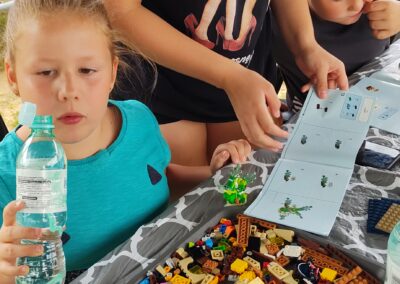 Głównym celem było rozwinięcie u dzieci umiejętności planowania, rozwiązywania problemów oraz ćwiczenia logicznego myślenia. Przeprowadziliśmy 6 spotkań dla dzieci z podziałem na dwie tury. Każde dziecko mogło dwa razy uczestniczyć w zajęciach w innej tematyce lego. Podjęte działania miały bardzo pozytywny wpływ na dzieci, które bardzo chętnie brały udział w zajęciach i pytały, czy będą mogły jeszcze uczestniczyć. Zajęcia dla dzieci były przeprowadzone na zewnątrz podczas sprzyjającej aurze pogodowej. Pokazaliśmy dzieciom jak fajnie i kreatywnie można spędzać czas wolny. Zależało nam bardzo, żeby pokazać dzieciom, że czas spędzony wspólnie bez telefonów z innymi dziećmi jest naprawdę fajny. Osiągnęliśmy wszystkie założone cele. Niektóre dzieci miały duże problemy z budowaniem lego, widać, że nie budowały wcześniej lub bardzo sporadycznie. Większość dzieci była z jednej miejscowości dlatego to spotkania przyniosły im wiele korzyści i radości. Wspólnie spędzony czas, zorganizowana przerwa na przekąski i wspólne rozmowy zbliżyło dzieci  i umocniło ich relacje.