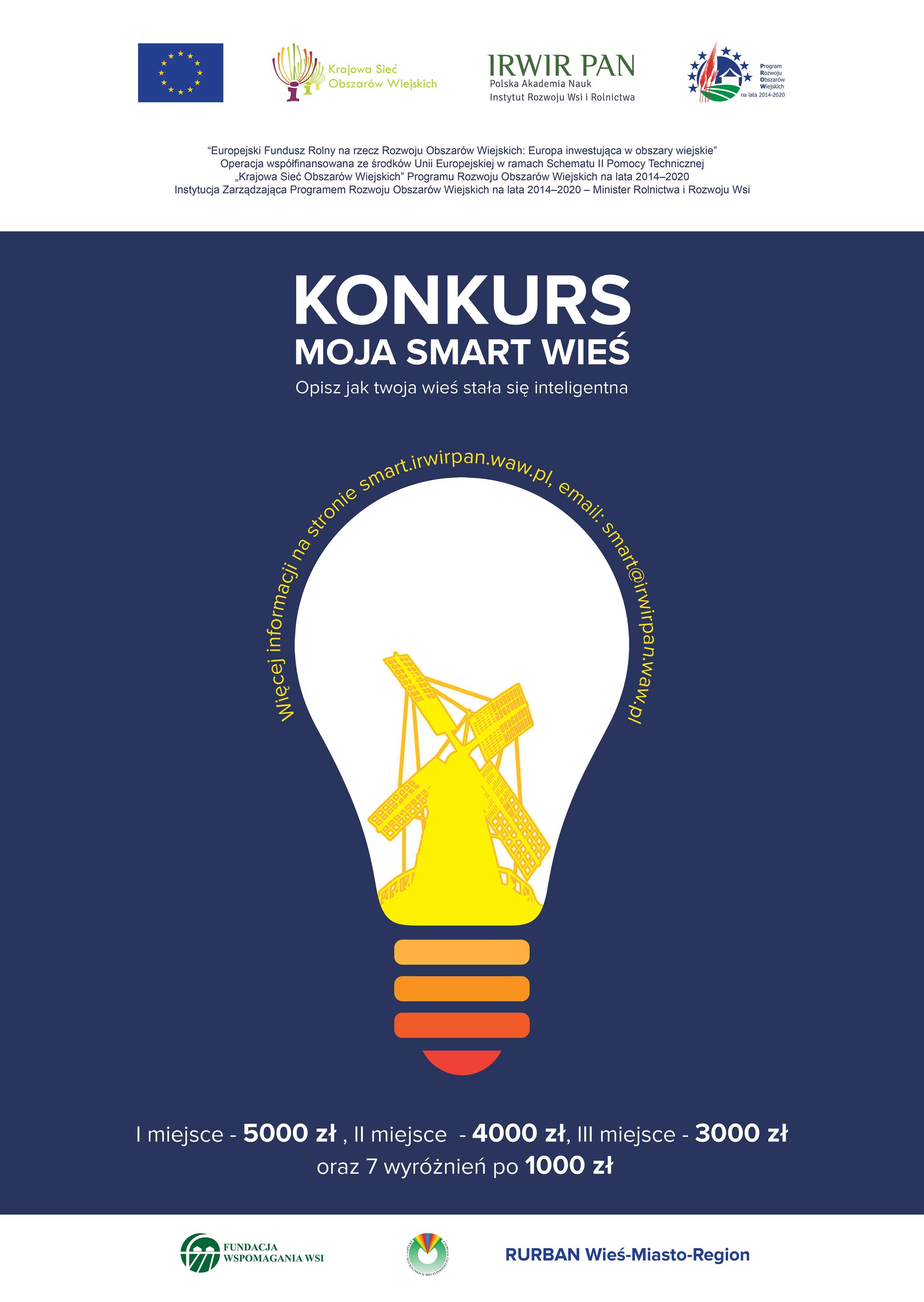 "Smart villages – Inteligentna wieś" to koncepcja rozwoju obszarów wiejskich. Inteligentna, zrównoważona i innowacyjna wieś, która wykorzystuje nowoczesne technologie w celu poprawy jakości i poziomu życia jej mieszkańców, nie musi pozostawać jedynie w sferze wymysłów futurystów. Wzrost efektywności zarządzania i świadczenia usług oraz poprawa konkurencyjności terenów wiejskich, przy jednoczesnym poszanowaniu ekonomicznych, społecznych i środowiskowych potrzeb obecnych i przyszłych pokoleń są możliwe już dzisiaj. Jak to zrobić? Konkurs na opis pomysłów i inicjatyw smart ma stanowić odpowiedź na wyzwania stawiane współczesnym wsiom.