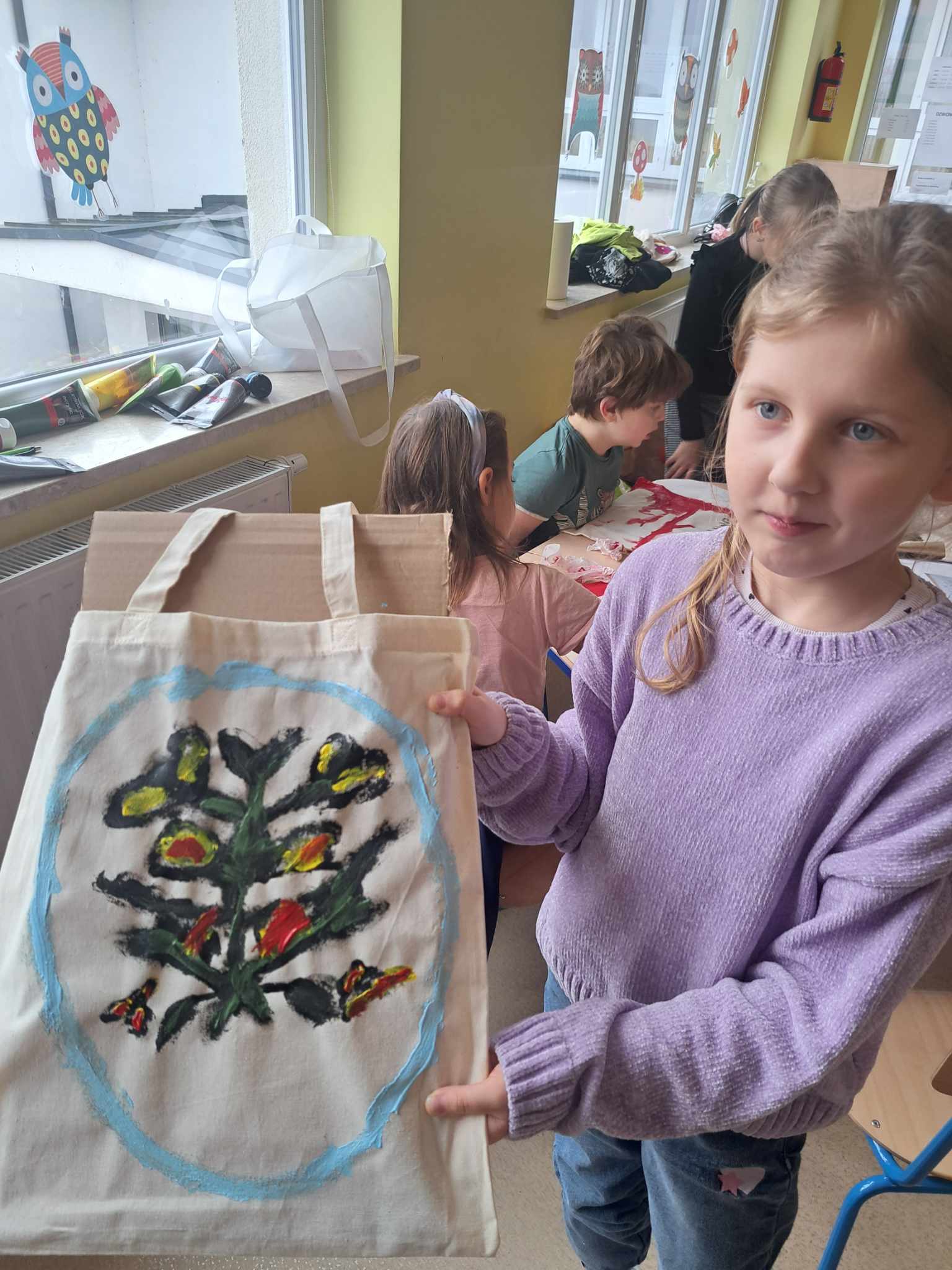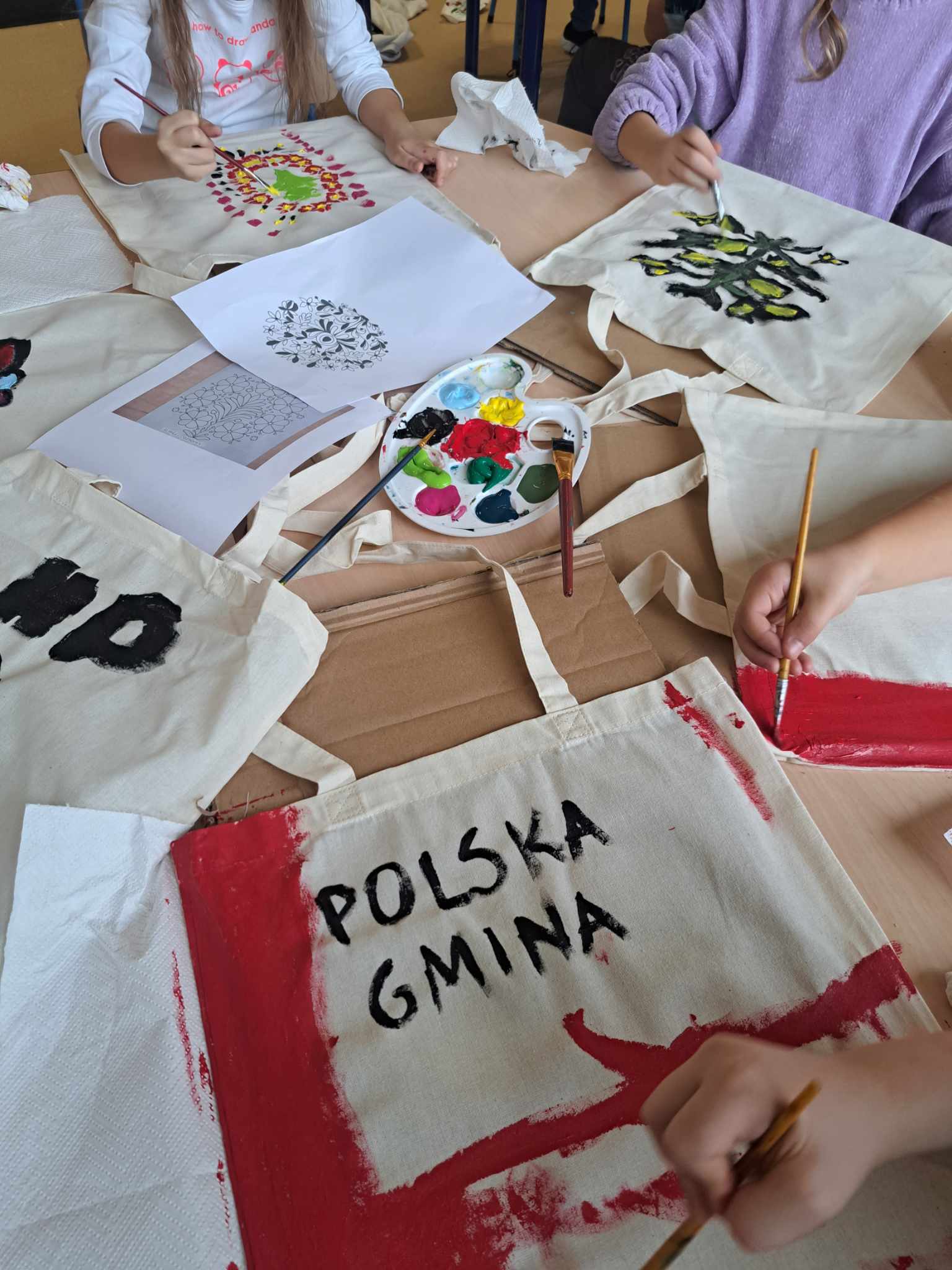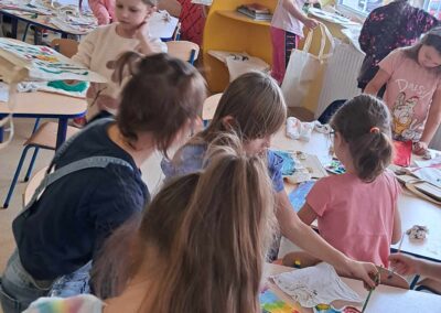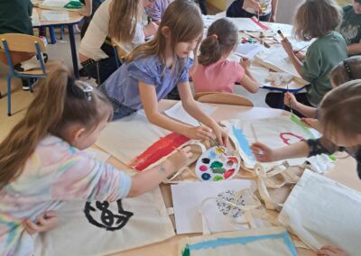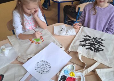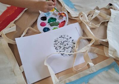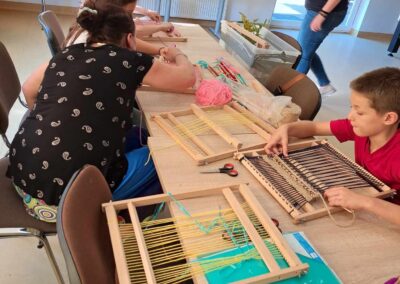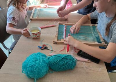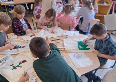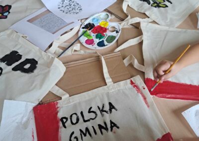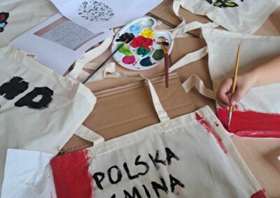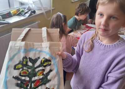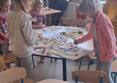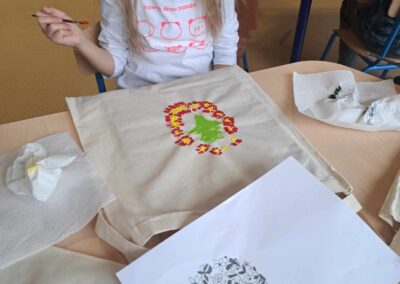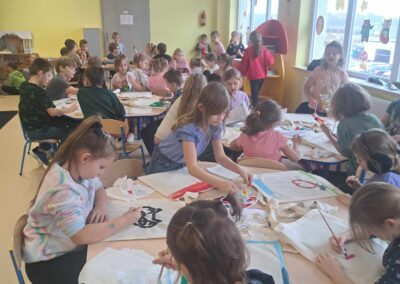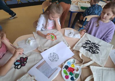 Kolejnym warsztatem było malowanie eko toreb, podczas którego uczestnicy własnoręcznie ozdabiali tkaniny, tworząc niepowtarzalne, etniczne wzory obu regionów. Warsztaty odbyły sie w świetlicy w Bartągu dnia 14,11,2 o godzinie 11:00. Liczba czynnych uczestników 51 . Dodatkowo, odbyły się warsztaty tkackie, gdzie dzieci uczyły się tkania makatek na krosnach. Warsztaty odbyły się 26.09.2023 o godz. 15.00. Podczas każdego spotkania przekazywano także dzieciom kilka zwrotów warmińskich i mazurskich, opowiadając o historii i tradycjach regionów.