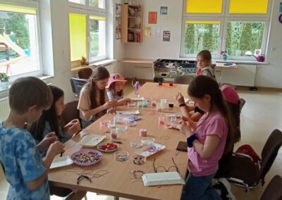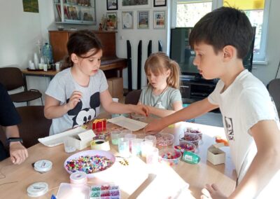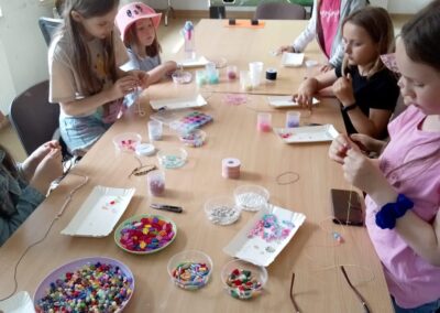 W trakcie projektu odbyły się trzy spotkania o charakterze edukacyjnym, podczas których dzieci uczestniczyły w bezpłatnych warsztatach. Jednym z zajęć było tworzenie biżuterii i breloczków nawiązujących do symboliki warmińskiej i mazurskiej.  Uczestnicy zapoznali się z podstawowymi narzędziami, półfabrykatami jubilerskimi oraz elementami potrzebnymi do wyrobu biżuterii. Każde dziecko zaprojektowało i wykonało swój własny naszyjnik, breloczek, kolczyki lub bransoletkę. Dodatkowym atutem było zdobienie ciała henną, inna forma biżuterii. Warsztaty odbyły się w Tomaszkowie dnia 14.11.23 o godz. 15:30.