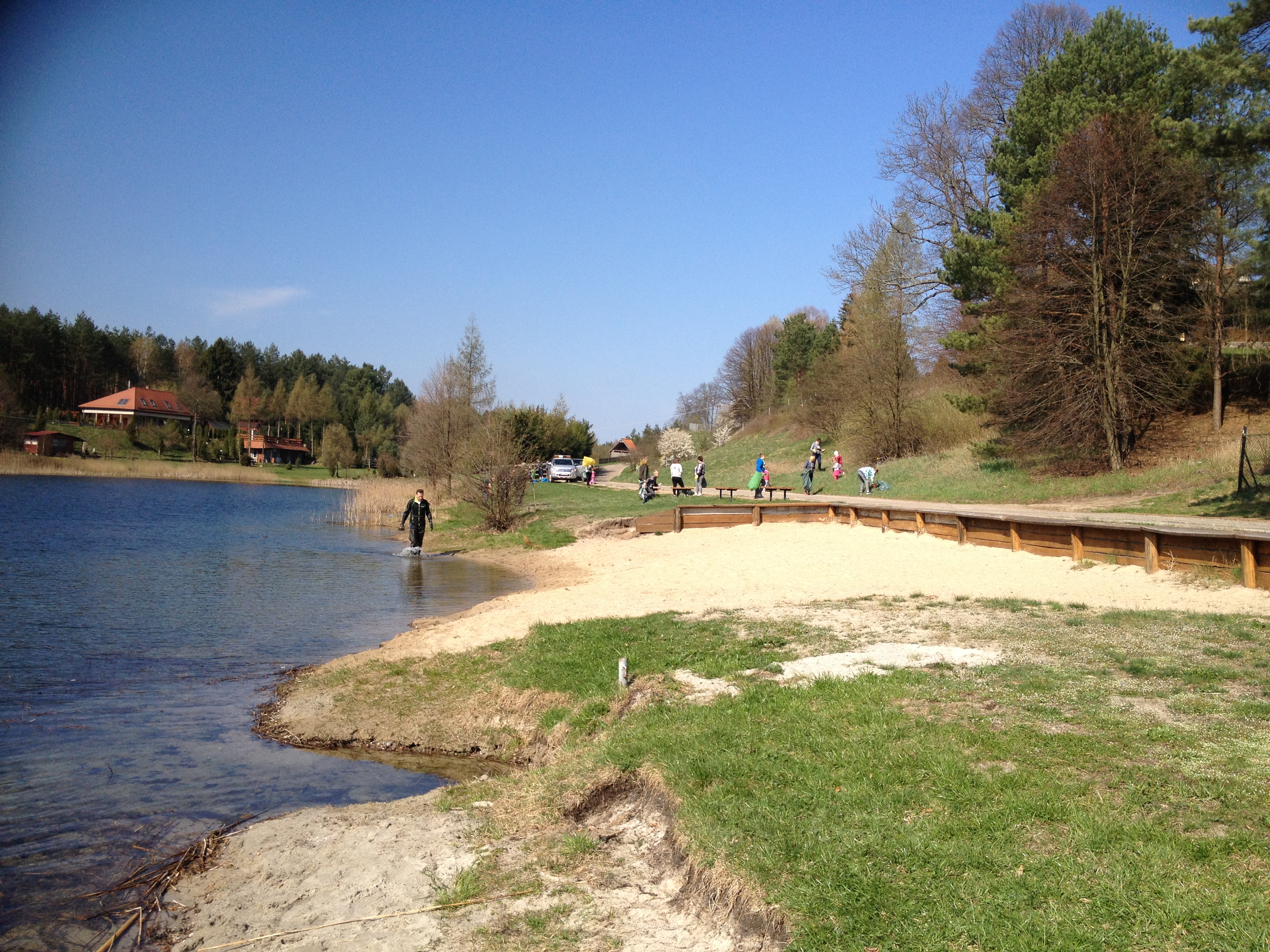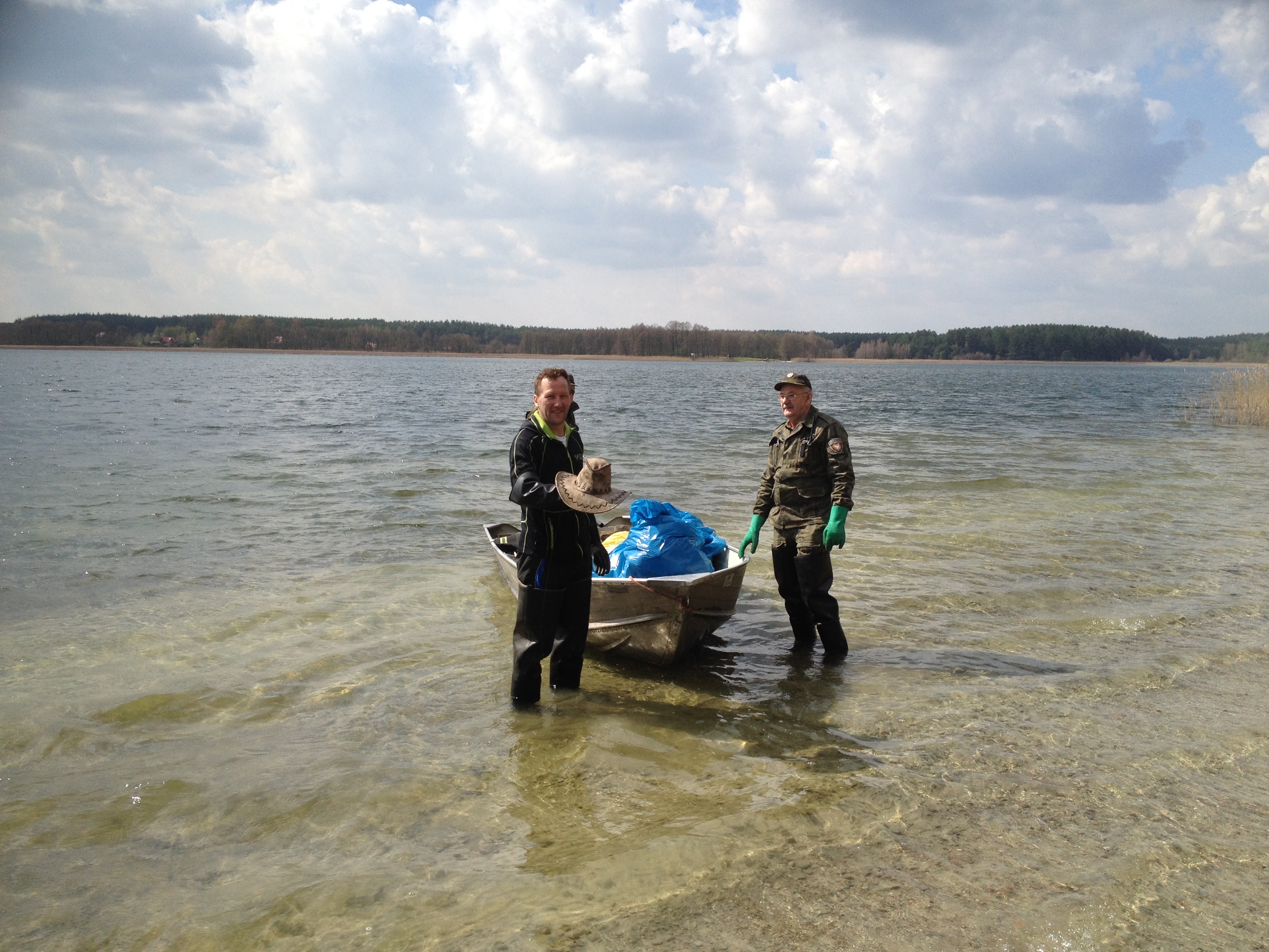 W imieniu swoim i wszystkich uczestników akcji sprzątania brzegów jeziora Gim chcemy bardzo serdecznie podziękować Państwu za czynny udział. Okazało się, że spontaniczna akcja zainteresowała przeszło 40 uczestników, którzy w wolny dzień podjęli się trudnego zadania uporządkowania brzegów jeziora. Bardzo cenne było wsparcie dwóch Nadleśnictw – Nowe Ramuki i Jedwabno oraz Gospodarstwa Rybackiego Szwaderki, dzięki którym zebrane śmieci natychmiast zostały zwiezione do kontenera (i obok kontenera ponieważ było ich niestety znacznie więcej) dostarczonego przez Gminę Purda. To czego nie daliśmy rady przynieść w workach do najbliższej drogi było ładowane do łodzi przez straż rybacką. Taka logistyka jest bardzo dobrym przykładem współpracy różnych organizacji działających na tym samym terenie, którym zależy na zachowaniu piękna czystej przyrody. Wszystko to ma również aspekt edukacyjny, chociaż wiemy, że w tego typu akcjach nie biorą udziału ci co śmiecą.