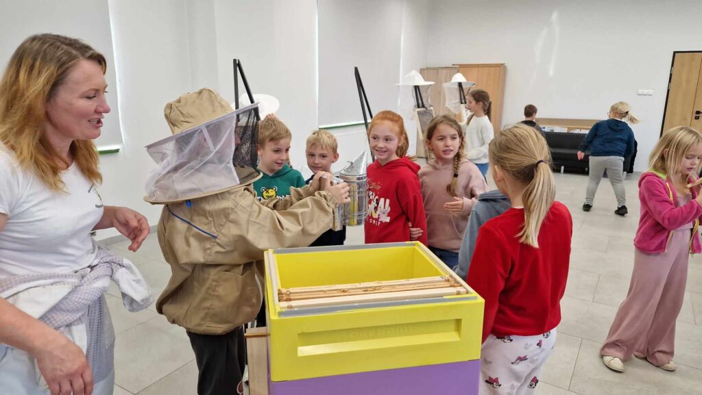 - zapoznanie z życiem pszczół i poznanie pracy pszczelarza;